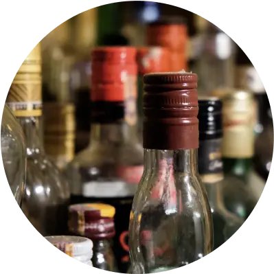 • 5 Glass spirit bottles (1L) with labeled lids (Vodka, Whiskey, Rum, Gin, Tequila)
